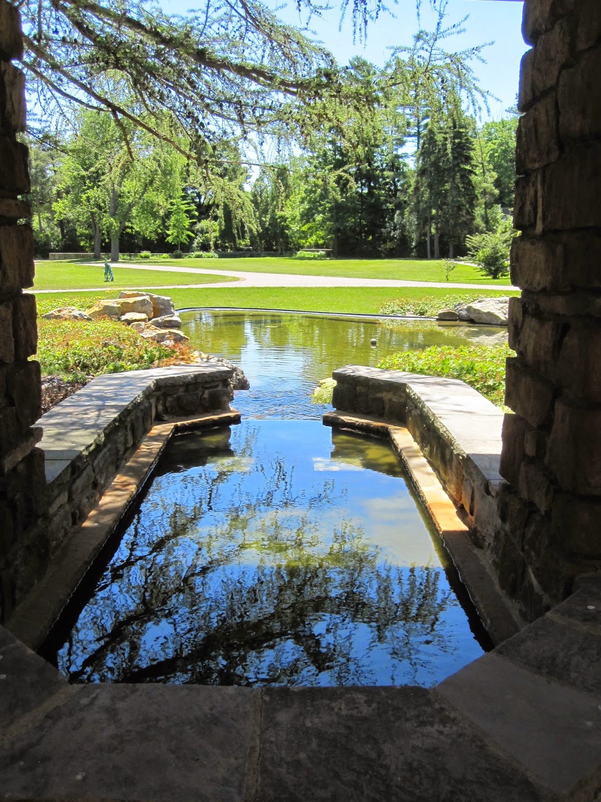 Other features of the home are having a garden at one of the end of the home where the runoff from rain showers were angled so that it would empty in the garden and keep it watered. Another Wright touch would be the open ribbon like windows on both sides of the home. It gives the illusion that you can see through the home and enjoy the views of the lake and Canada across the way. My favorite aspect of Greycliff is the running fountain that is designed in the front of the home and main walk way. Two smaller walls line a water way that empties out into a bigger, natural, pool, so that it gives the illusion the lake is running through the home.